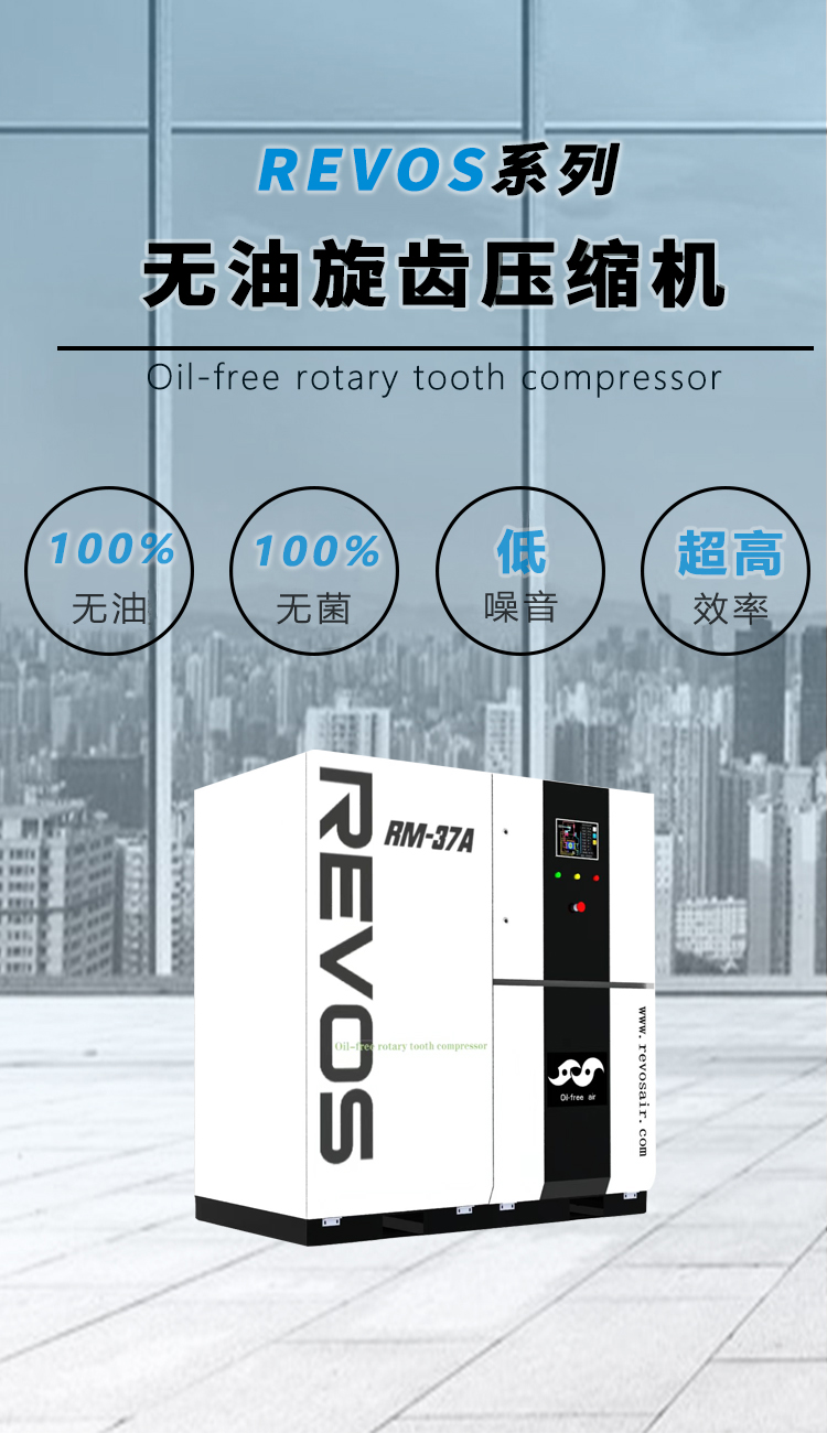 通过多年的团队技术研发成果,瑞沃斯流体机械(苏州)有限公司隆重推出了自主设计的无油纯净空气的无油旋齿压缩机和鼓风机。其中REVOS系列具有可靠的稳定性、安 全性和低能源成本的优势,经过不断的产品开发,瑞沃斯流体机械(苏州)有限公司创立了自主品牌REVOS,已取得ISO CIASS0认证。为高品质无油压缩空气制造增添一份力量。